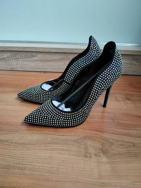 Kolor czarny, pokryte ozdobami Pięknie odbijają światło Obcas 11cm Drugie zdjęcie z fleszem Ostatnie zdjęcie ...